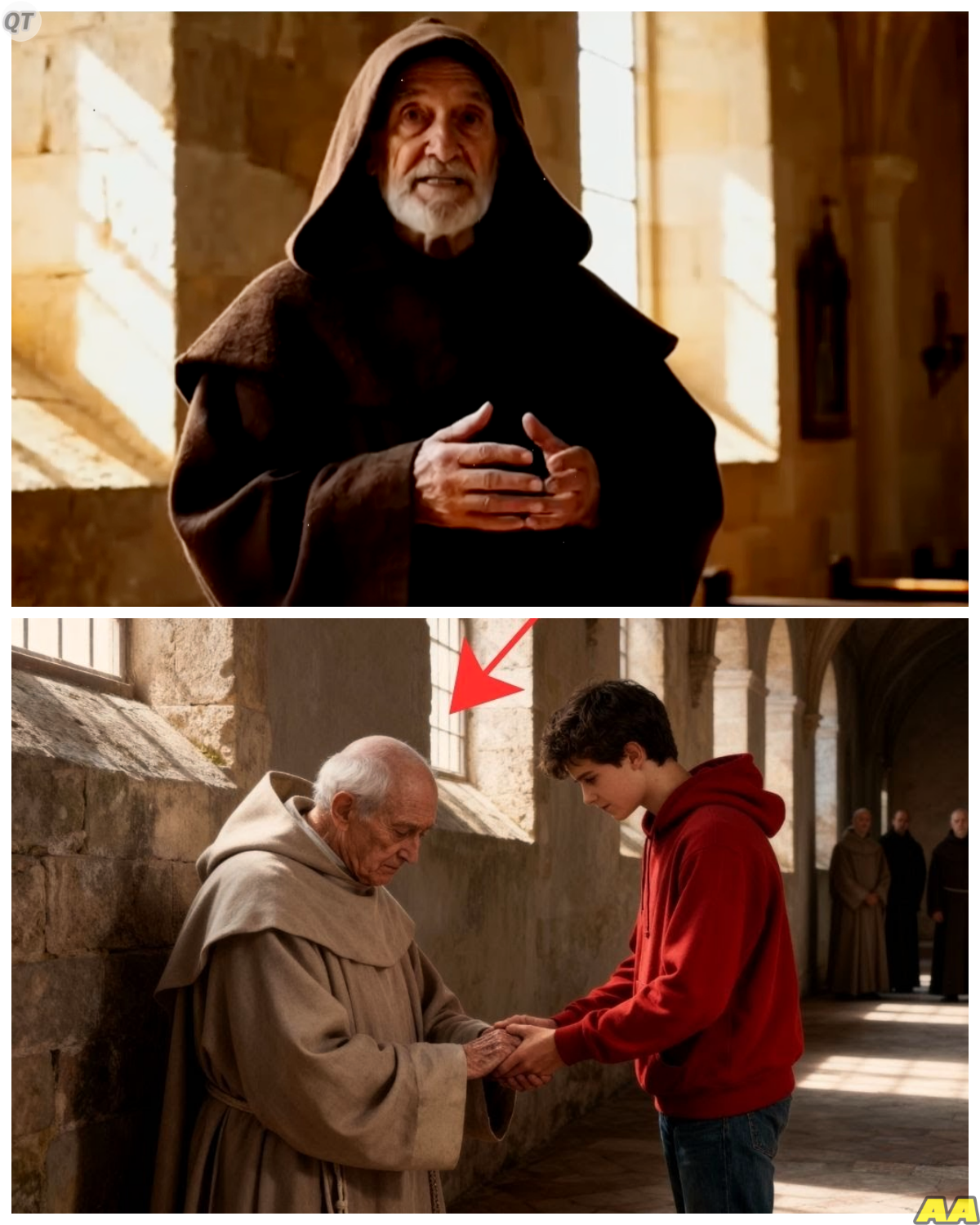 El monje anchano, cuello nunca había visto participar de conversaciones largas con nadie, que vivía permanentemente con los ojos bajos mirando el piso de piedra como si cargara una vergüenza antigua o un peso invisible, se quedó completamente rígido, paralizado, con los ojos castaños muy abiertos, mirando directamente al rostro joven de Carlo, con una expresión mezclada de shock, incredulidad y algo parecido a un alivio doloroso de alguien que escucha por primera primera vez en décadas su propio nombre pronunciado con ternura.